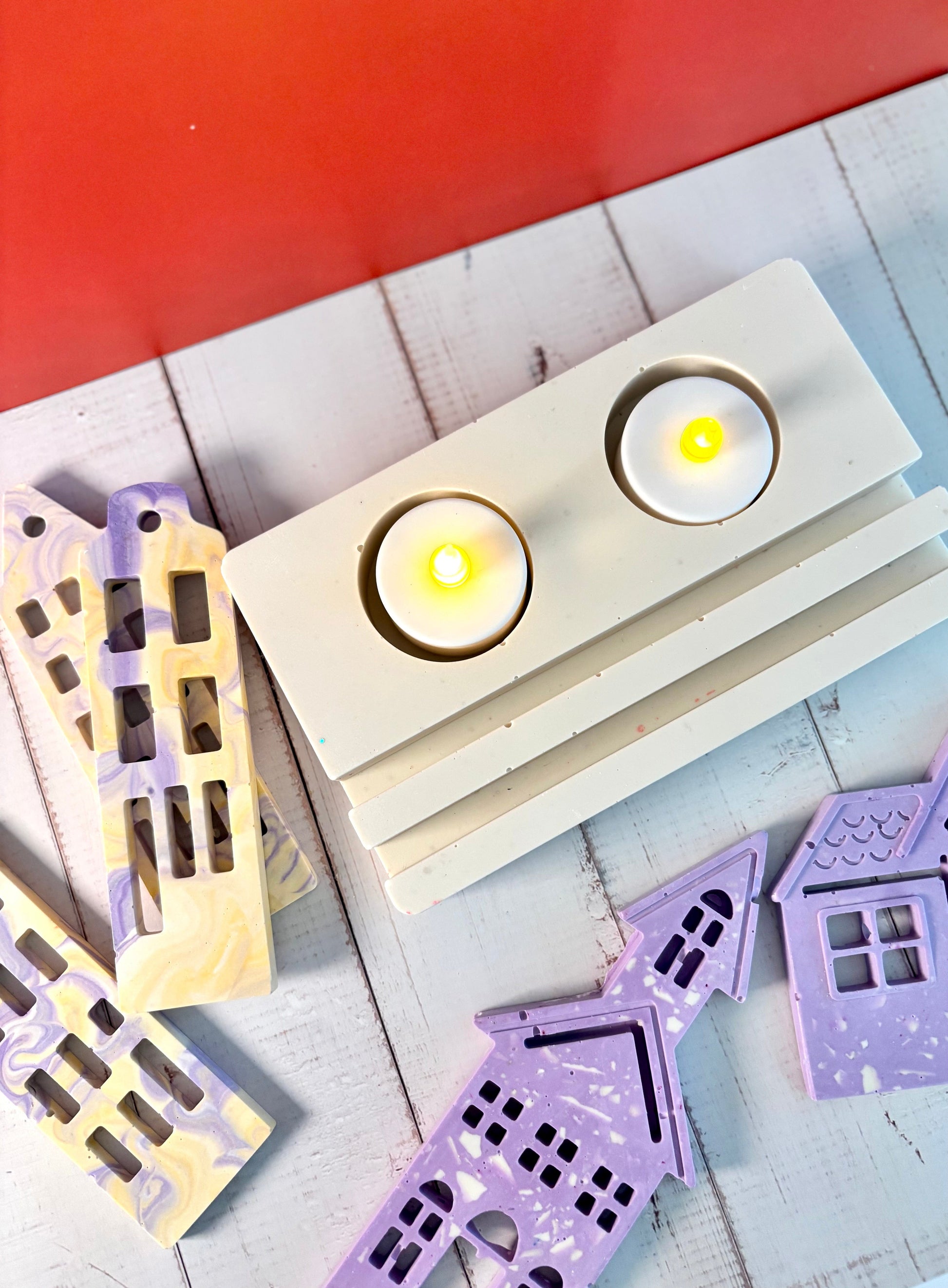 Casette olandesi Ametista in eco resina con base porta-lumino rettangolare